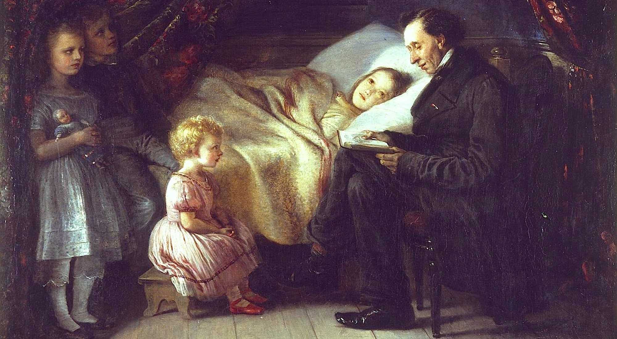 Ганс Христиан Андерсен читает книгу детям