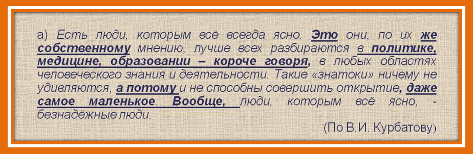 Этот вид материала передает основную мысль автора, то есть то, что он хотел донести до нас большим объемом информации