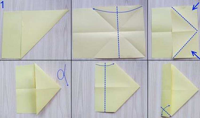 - к этой черте пригибаются все уголки листа, после этого лист складывается пополам так, чтобы загнутые уголки оказались внутри;