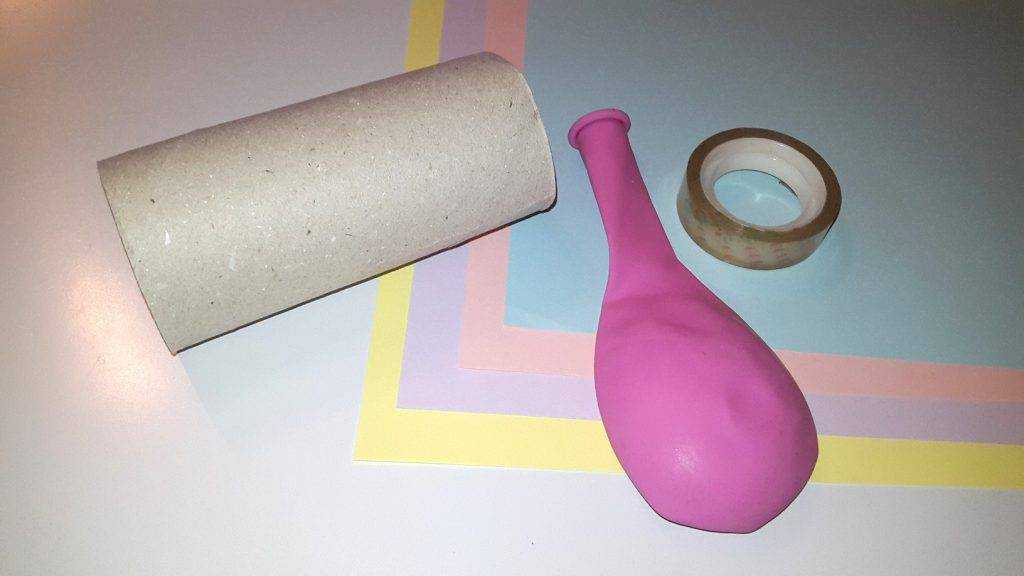 - Надеваем шарик на один конец трубки. Натягиваем до упора. Фиксируем шарик на цилиндре. Для этого можно использовать скотч, изоленту. Не жалейте материал, делайте несколько оборотов, чтобы шарик не выскочил во время выстрела. Для дополнительной надежности можно еще одеть канцелярскую резинку в два-три оборота.Если нет под рукой втулки, можно самостоятельно сделать цилиндр из плотного картона. Он должен хорошо держать форму. Склеить картон можно скотчем по кругу, чтобы он не развалился во время использования.