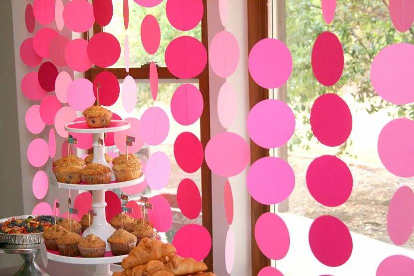 Детский праздник не обойдется без этого простого на первый взгляд, но очень необычного украшения. Зонтики можно подвесить на стену, создав необычную композицию для фотосессий. Сделать это оригинальное украшение самостоятельно несложно, каждый зонтик чаще всего выполняется в разном цвете. Перед изготовлением стоит приготовить бумагу для скрапбукинга, клеевой пистолет, степлер и салфетки.