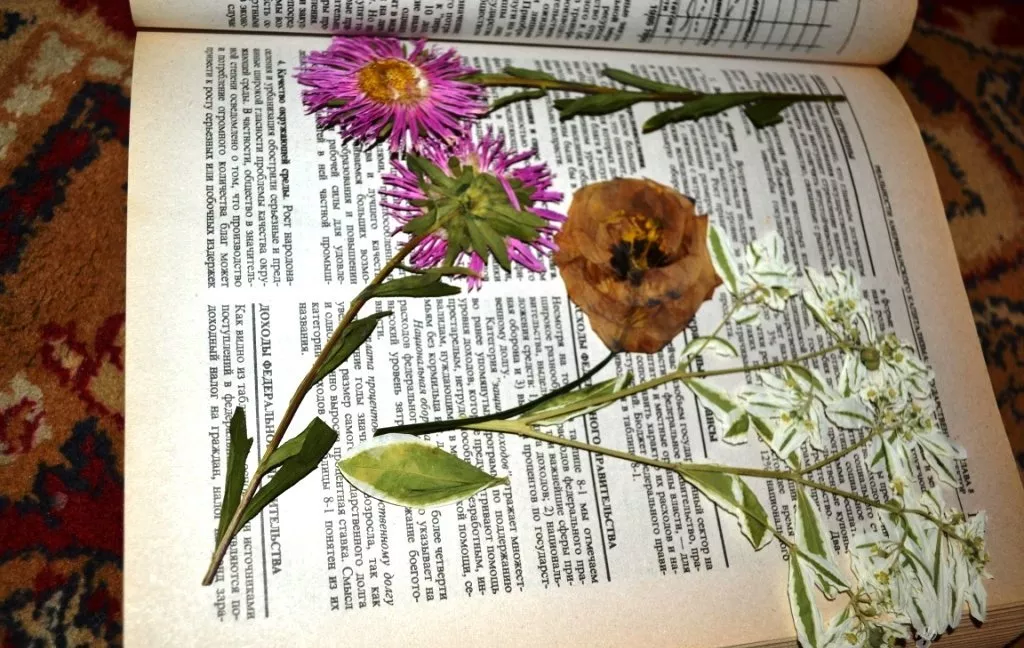 1. Собранные заранее березовые листочки ровно положите на несколько дней в старую книгу между страничками, чтобы они высохли.