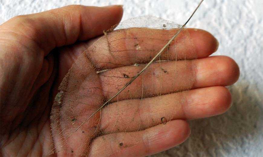 Скелеты листьев за счёт своей лёгкости и прозрачности смотрятся очень эффектно в качестве декора. Чтобы добиться такого эффекта, нужно прибегнуть к специальной технике — скелетированию.