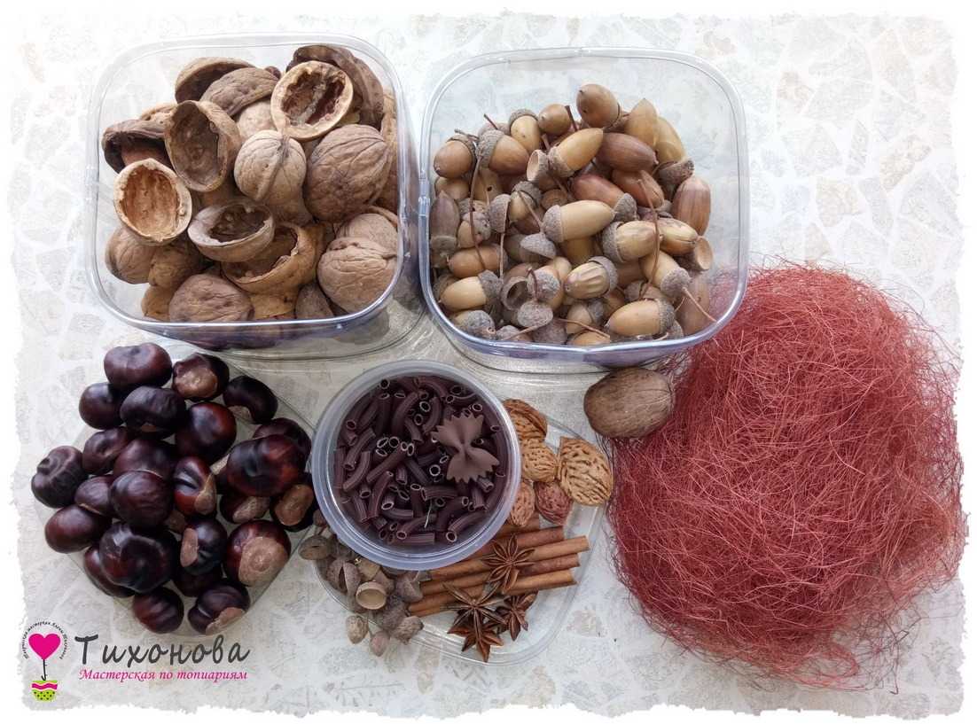 - Каштаны, грецкие орехи, желуди.