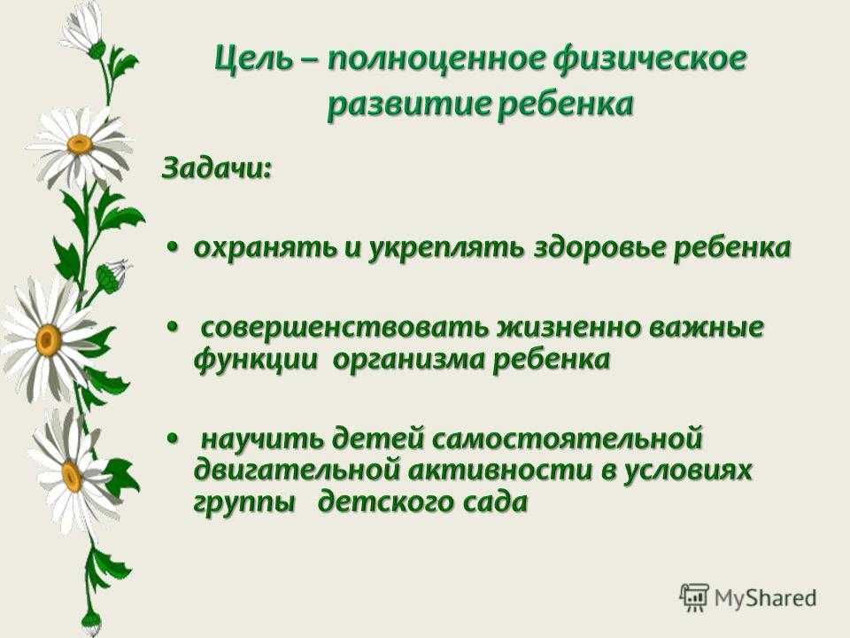 Оборудование: наклеенные на стене силуэты детских ладошек в различных вариантах от пола и до 1,5 м; силуэты детских следов от пола и до 70 см; разноцветные полоски, геометрические фигуры для подпрыгивания.