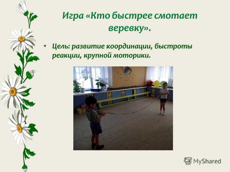 Цель: развитие выносливости, координации, быстроты реакции, крупной моторики.