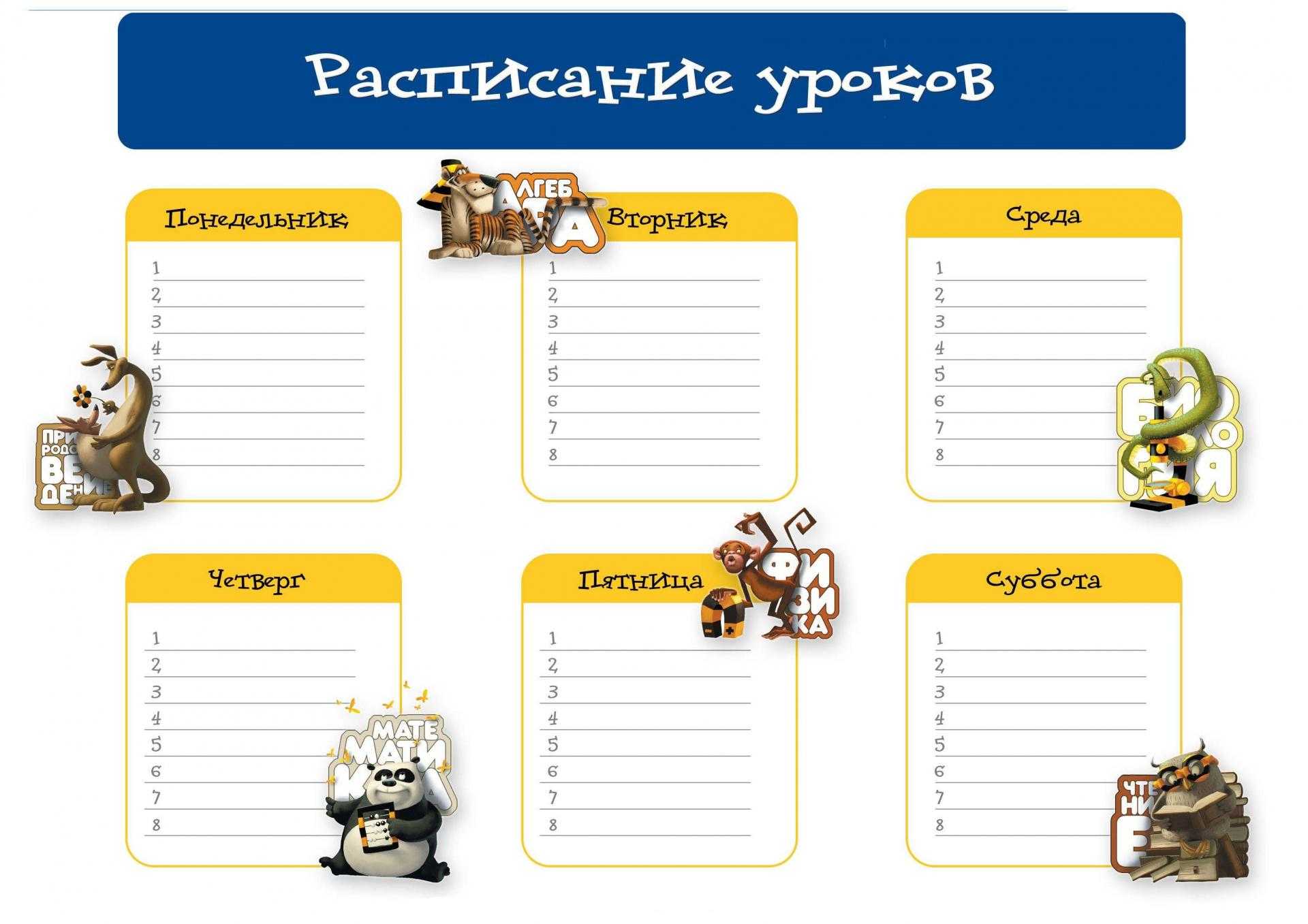 Шаблоны расписания уроков для 5 — 11 классов (на 7, 8, 9 и 10 уроков)