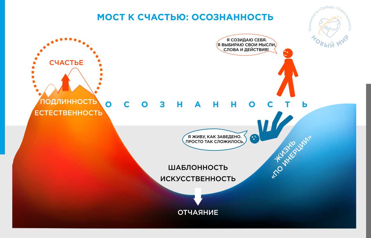 Будучи осознанным, ты выбираешь свои мысли, слова и действия. Ты создаешь свое состояние. Ты можешь творить самого себя. Заниматься осознанным самосозиданием. А без осознанности тебя будут творить окружающие обстоятельства. И твое подлинное «Я» останется нераскрытым.