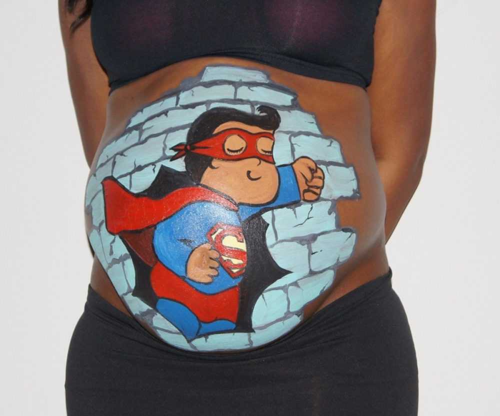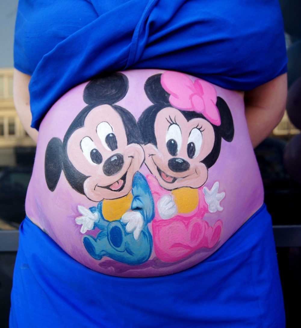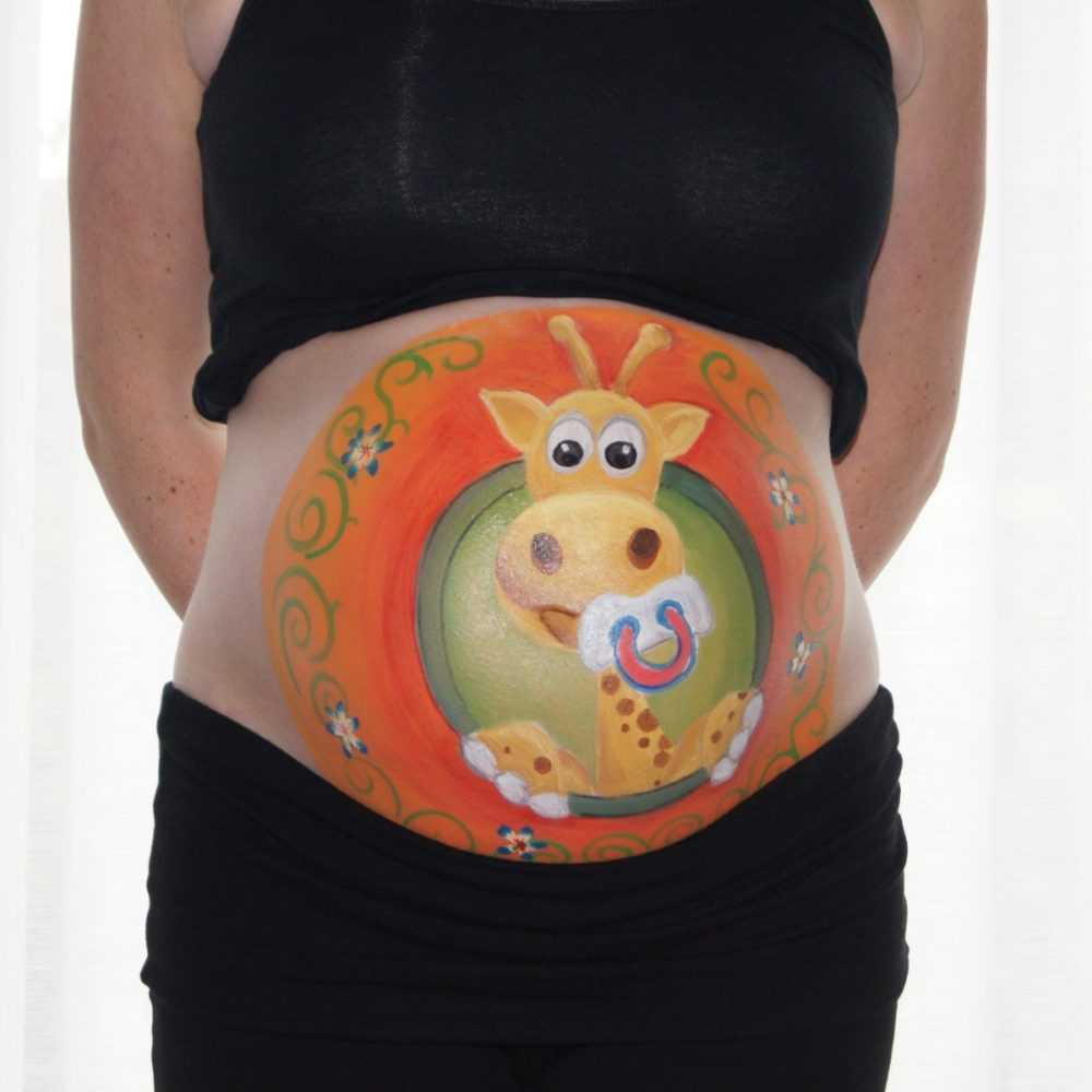 Иногда на животе даже изображают снимки УЗИ будущего малыша. Картинки с младенцами и аистами тоже популярны.