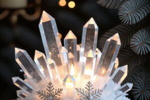 Есть еще один способ создать объемную снежинку для люстры. Он намного легче предыдущего, но по красоте изделия ничем не уступают первому варианту.