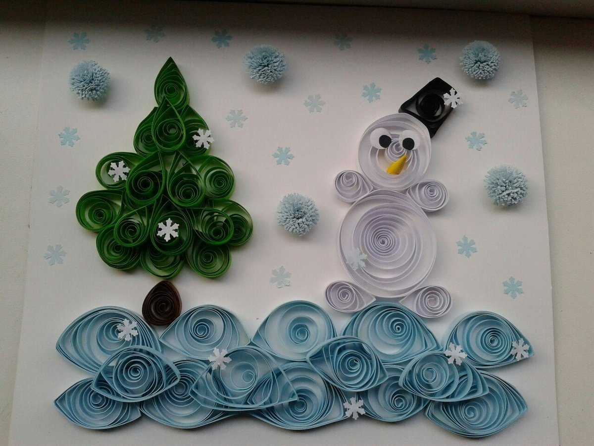 Не умеем рисовать? Да и не надо! Вырезаем снежинки, готовим лучшие фото, изображаем из ленты или бумаги ёлочку в центре и вуаля — готово!