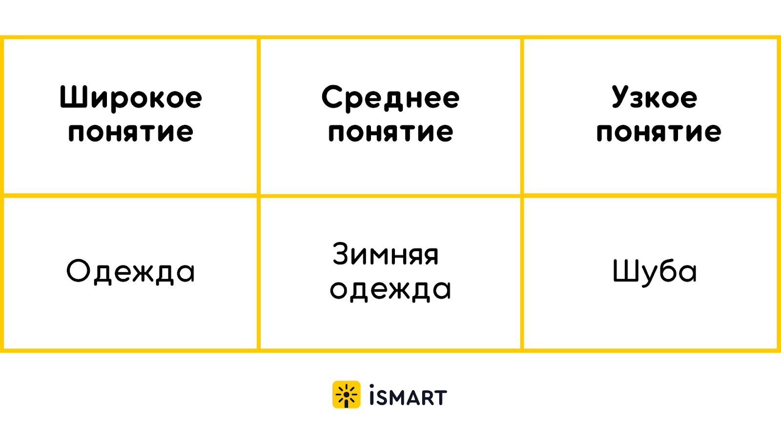 Это упражнение развивает умение устанавливать связи между общими и частными понятиями. Предложите ребёнку расположить по трём колонкам слова так, чтобы слева было широкое понятие, а в центре и справа — более узкие.
