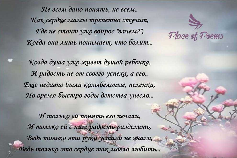 Можно быть уверенными в том, что эти стихи для Вашей мамы станут неожиданным приятным сюрпризом и надолго останутся в ее сердце и душе.