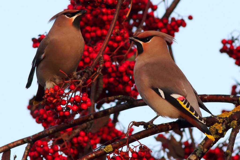 Зимой же основная их пища – это ягоды. В средней полосе России кормятся в рябинниках, в других районах склевывают ягоды барбариса, омелы, калины, шиповника, брусники, да и вообще любых ягодных кустарников.