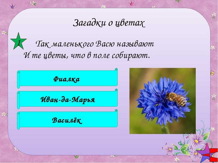 Из них букеты собирают,На дне рождения вручают,И залы, холлы украшают,Как красоту ту называют? (Цветами)